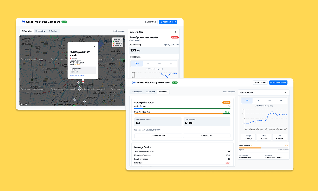 UI/UX mockup dashboard for real-time sensor data using React, Radix UI, Hero UI, Shadcn, and Leaflet. Built for visualizing mock IoT metrics on maps.